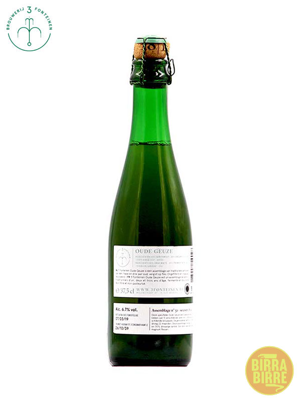 La Oude Geuze di 3 Fonteinen è una birra acida prodotta dal rinomato birrificio di Berseel, una miscela di lambic invecchiati rispettivamente 1,2 e 3 anni. A seguito dell’assemblaggio la 3 Fonteinen Oude Geuze riposa in cantina almeno un anno e successivamente viene immessa sul mercato, con una scadenza dichiarata di 20 anni che può andare anche oltre. Questa birra acida si presenta con un colore giallo dorato e con schiuma bianca cremosa e di poca persistenza; presenta una discreta torbidità e la tipica frizzantezza dello stile. Al naso frutta, agrumi e vaniglia; gli aromi sono quelli tipici dei lambic, sentori animali, note lattiche e acetiche. Data la natura in continua evoluzione il profilo organolettico è mutevole relativamente all’annata, l’invecchiamento e la conservazione. Questa Oude Geuze dal corpo leggero e dotata di buona secchezza è incredibilmente scorrevole e beverina.
