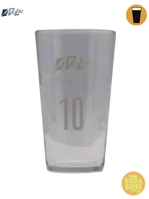 Bicchiere pinta americana del birrificio lombardo Dulac, un bicchiere versatile dedicato a numerosi stili birrari, con tacche esposte a 40 cl e 20 cl.