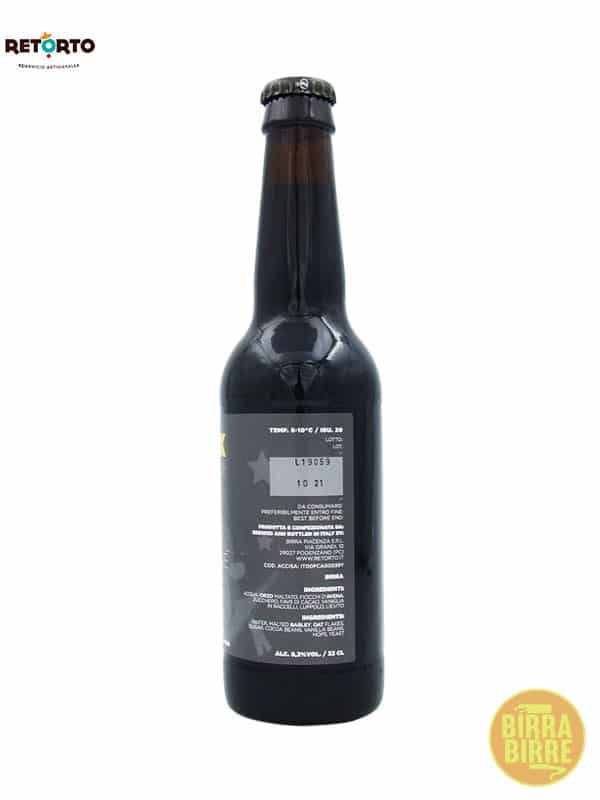 La Black Lullaby è una belgian dark strong ale ricca e morbida, una delle birre più apprezzate della produzione di Retorto. Dal colore tonaca di frate molto scuro, tendente al nero, ha una schiuma beige ricca e cremosa, di buona persistenza. Al naso emergono note di caramello, biscotto, frutta secca e cioccolato, e note fruttate di mela, pera e banana. In bocca sorprende per la morbidezza e gli aromi di vaniglia e cacao, seguiti da caffè e frutta matura. Dotata di una medio bassa carbonazione e caratterizzata dalla grande pulizia, la Black Lullaby ha un corpo alcolico importante, che viene evidenziato con l’aumentare della temperatura.