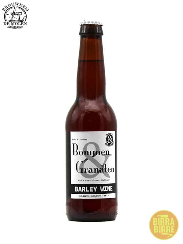 Bommen & Granaten è il barley wine prodotto dal birrificio olandese De Molen utilizzando lievito da Champagne. Dal colore ambrato tendente al bruno, e con riflessi dorati, possiede una moderata schiuma poco persistente. Al naso emergono note fruttate di agrumi e frutta bianca, esaltate dal lievito: la componente maltata, fine e seducente, contribuisce a creare un equilibrio quasi perfetto. In bocca emergono le note fruttate di mandarino e uva che ricordano il vino passito, mentre l’elevata gradazione alcolica è pericolosamente celata. Bommen & Granaten è un barley wine sontuoso che rasenta la perfezione, dotato di insospettabile bevibilità grazie anche alla bassa carbonatura e ad un equilibrio unico.