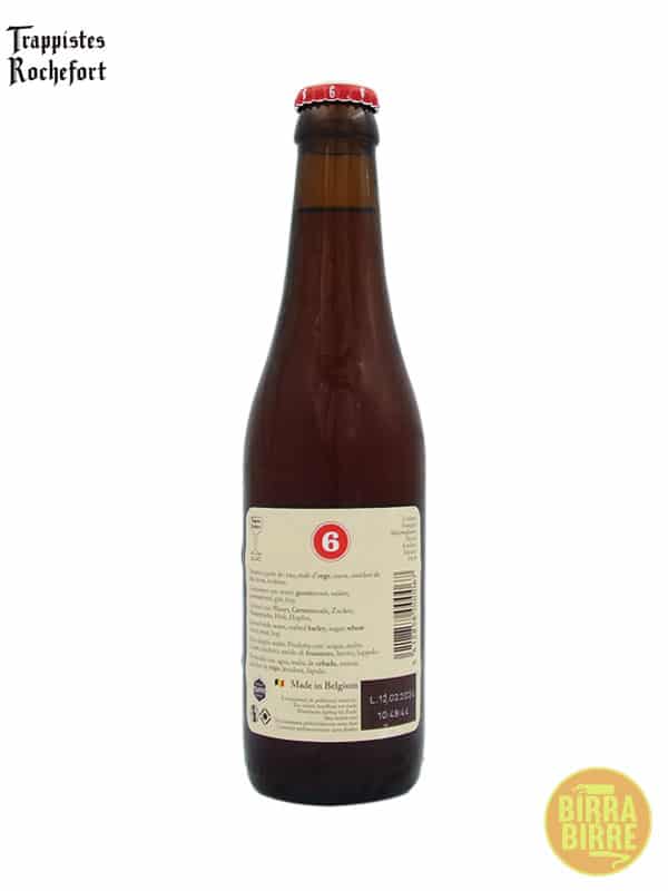 La Rochefort 6, nota anche come tappo rosso, è la birra trappista di Rochefort più antica, derivata dalla ricetta originale degli anni 30. Dal colore ambrato, quasi rosso, ha una schiuma fine e cremosa e un corpo medio. Dotata di carbonazione vivace, la Rochefort 6 presenta al naso sentori di caramello, miele e frutta matura, che si ripresentano in bocca, mentre sul finale si avverte l’amaro e la celata alcolicità. La Rochefort 6 non è facilmente reparibile sul mercato, rappresentando il 5% della produzione totale del birrificio.