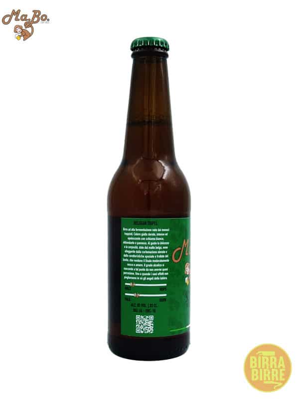 La Scimbia è la belgian tripel prodotta da MaBo, una delle realtà emergenti del panorama brassicolo varesino. Dal colore giallo dorato opalescente e dalla persistente schiuma bianca, questa tripel ha un corpo medio e una discreta carbonazione, come previsto dallo stile. Al naso emerge un bouquet ricco e complesso, nel quale spiccano le note speziate e la dolcezza dei malti e dello zucchero candito aggiunto a fine bollitura. In bocca spiccano le caratteristiche dei malti, ben bilanciate dalle note fruttate e speziate. La Scimbia è una birra dal robusto tenore alcolico ma sorprendente beverina, come previsto dallo stile tripel.
