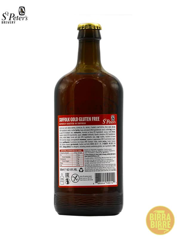 La St Peter’s Suffolk Gold è una birra gluten free, prodotta per processo di rimozione del glutine, certificato dall’ente britannico Coeliac UK.