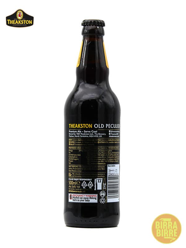 Theakston Old Peculier è la birra più prestigiosa dello storico birrificio dello Yorkshire, da molti definita una birra leggendaria (e oggetto di numerosi tentativi di riproduzione). Questa strong ale in classico stile britannico si presenta con il tipico colore rosso rubino che vira su toni più scuri, con un cappello di schiuma marrone scura persistente. Al naso risaltano le note di pane e caramello, unitamente a caffè ed importanti sentori di frutta (banana e ciliegia). In bocca risulta cremosa e morbida, si percepiscono note tostate ed erbacee che nel complesso conferiscono un carattere ben definito. Birra dal piacevolissimo finale, la Theakston Old Peculier rimane una di quelle birre da provare assolutamente almeno una volta nella vita, prodotta sin dal 1890.